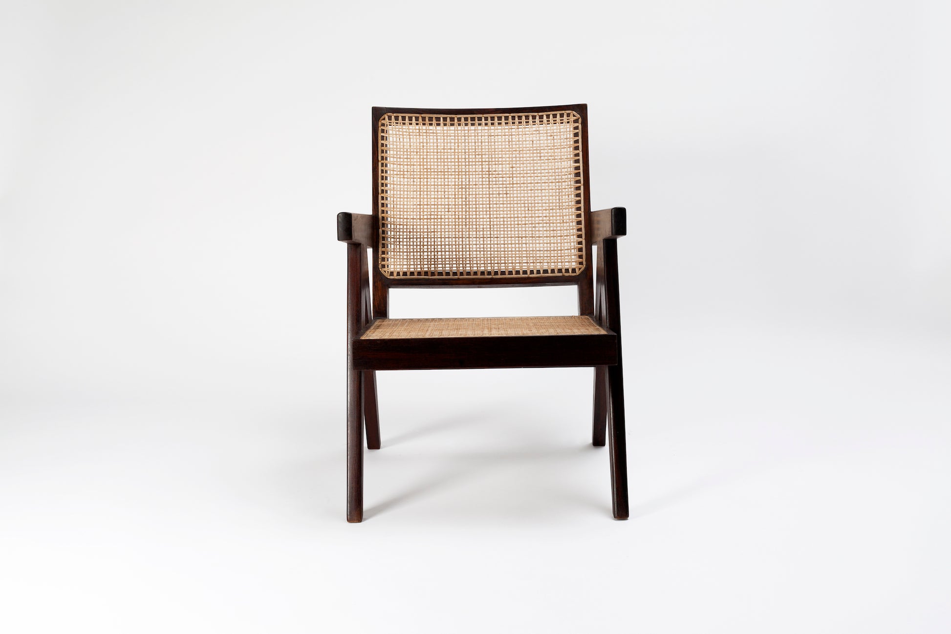 Der Easy Lounge Chair, ein Loungesessel-Modell, das für verschiedene öffentliche Gebäude in Chandigarh entworfen wurde. Verwendete Materialien: Teakholz (Herkunft: natürliche Wälder in Nordindien) und Naturrohr. Höhe: 75,5 cm