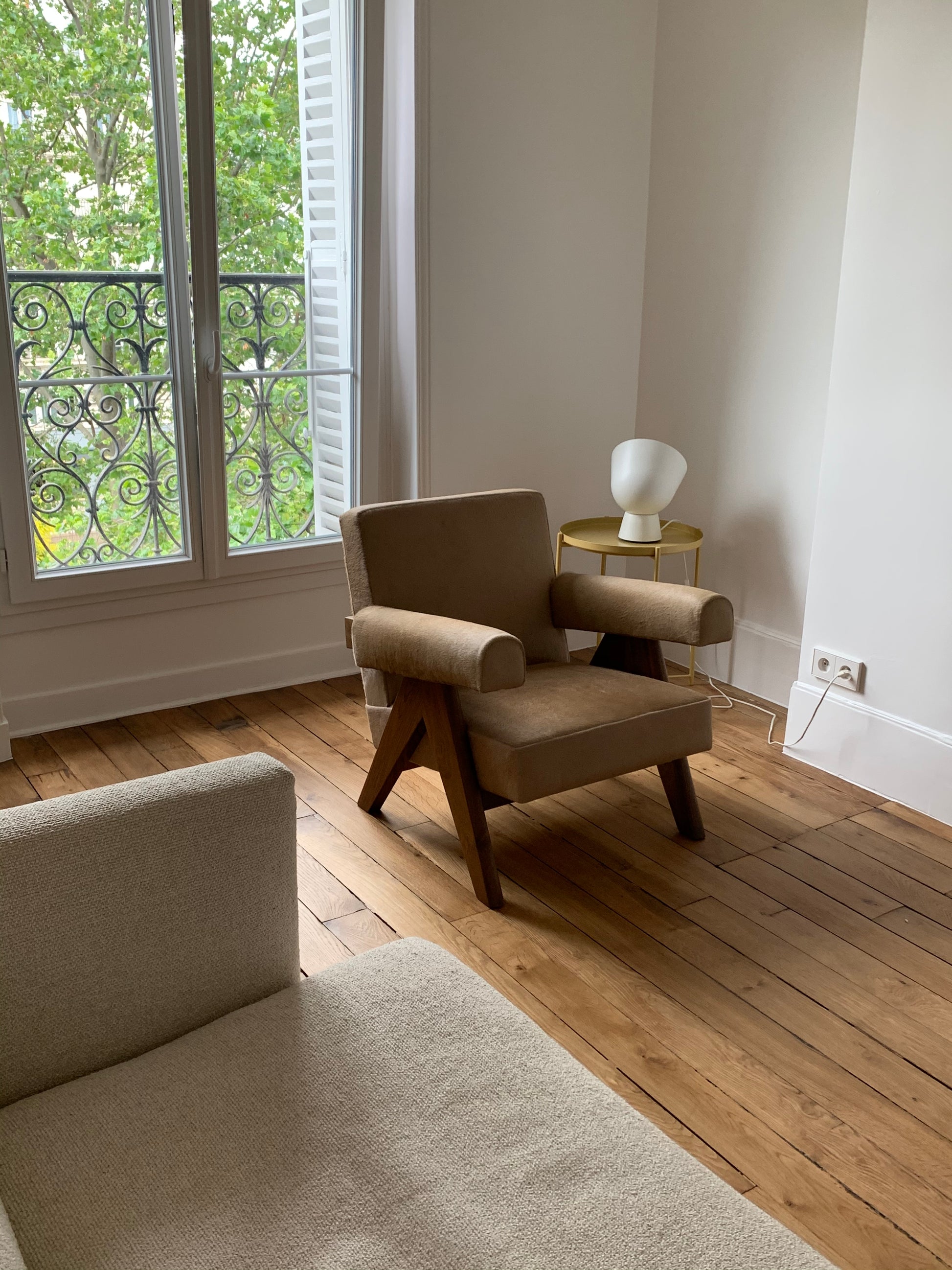 Das Easy Lounge Sofa aus Teakholz mit flacher, geneigter Rückenlehne und seitlicher Brückenstruktur. Verwendete Materialien: Teakholz (Herkunft: natürliche Wälder in Nordindien) und Textil. Designepoche: Mitte der 1950er Jahre