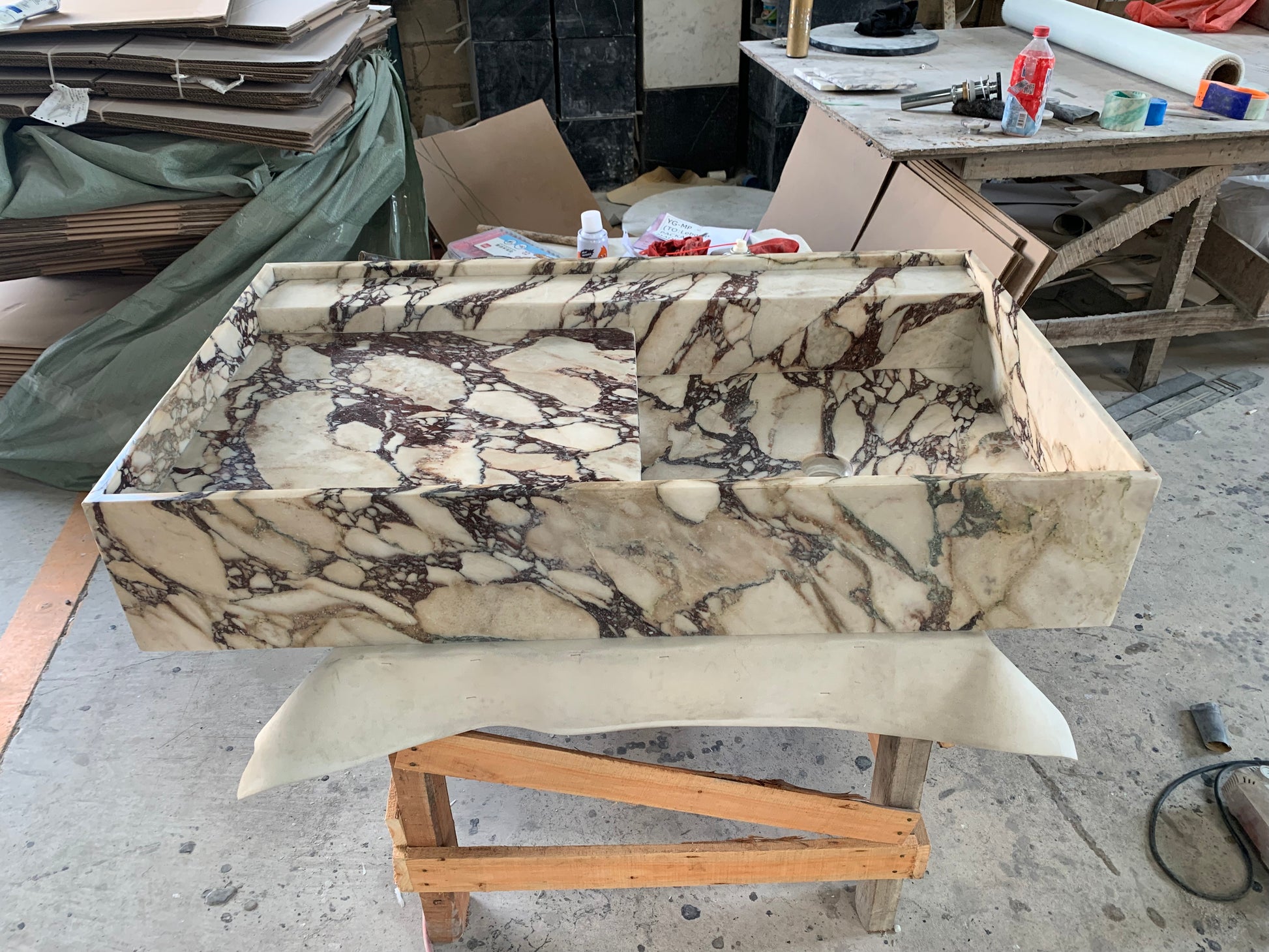 Das Karim Fugenwaschbecken ist eine atemberaubende Ergänzung für jedes moderne Badezimmer. Aus einem einzigen Stück Stein gefertigt, besticht dieses Waschbecken durch sein elegantes und modernes Design, das Ihren Raum optisch aufwertet. Die vertiefte Tischplatte und der erhöhte Rand verleihen ihm einen Hauch von Eleganz, während die robuste Konstruktion für lang anhaltende Schönheit und Funktionalität sorgt.