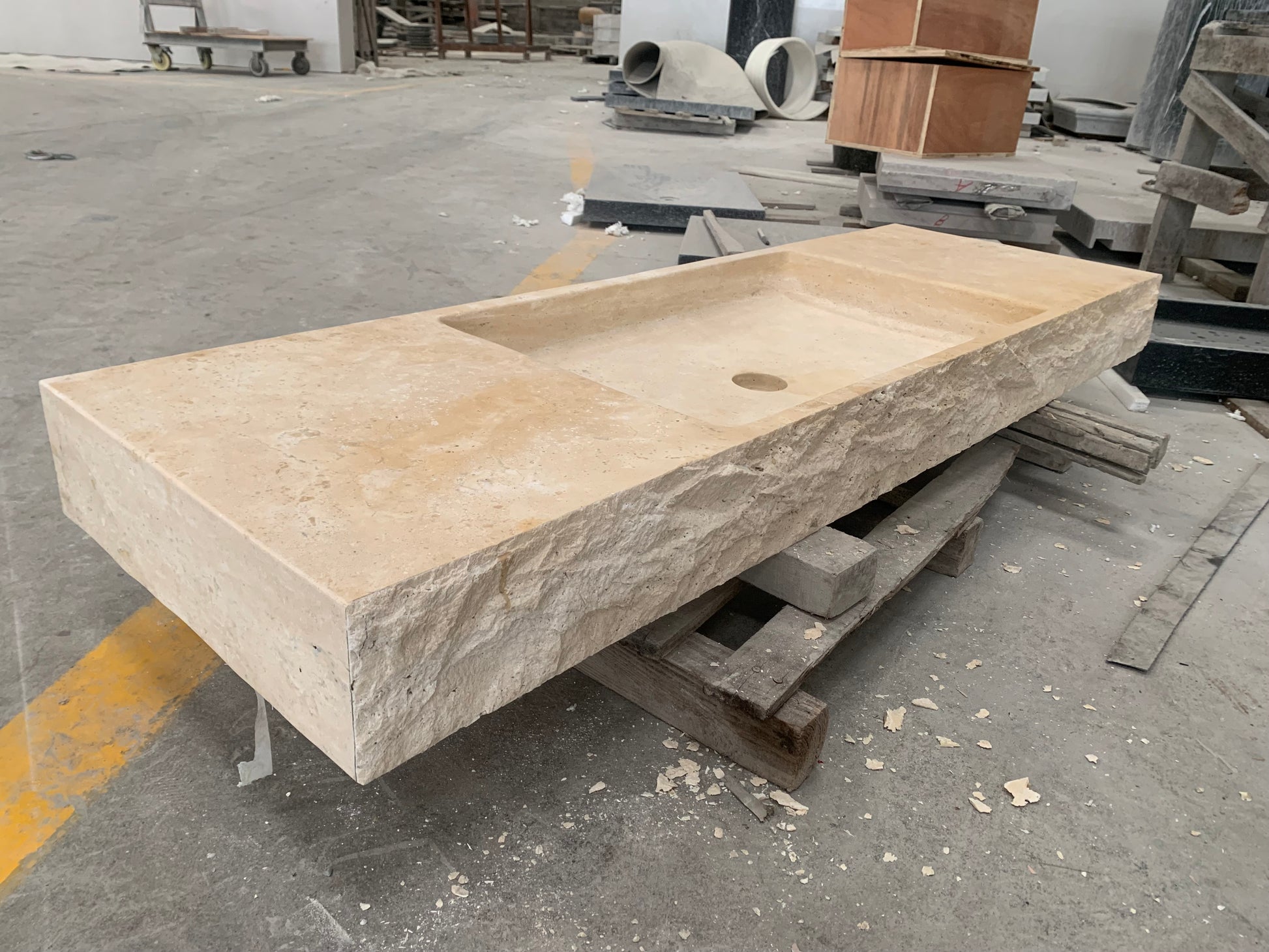 Das Malik Wandwaschbecken ist ein beeindruckendes Beispiel außergewöhnlicher Handwerkskunst. Sein Design aus gefugten Steinplatten strahlt Luxus und Eleganz aus. Die einzigartige Form vereint Stil und Funktionalität perfekt und wertet jedes Badezimmer auf. Das minimalistische Design passt perfekt in moderne Innenräume, während die hochwertigen Materialien für Langlebigkeit sorgen. Werten Sie Ihr Badezimmer mit dem Malik Wandwaschbecken auf.