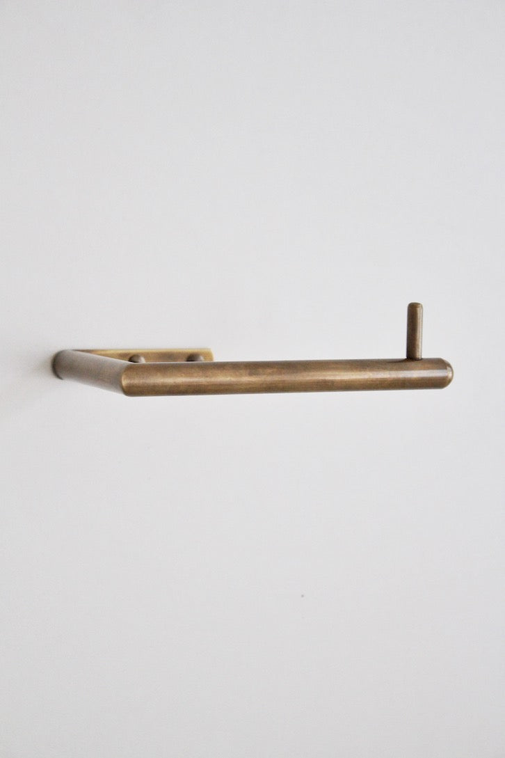 Toilettenpapierhalter aus Messing mit maßgefertigten Messingschrauben.