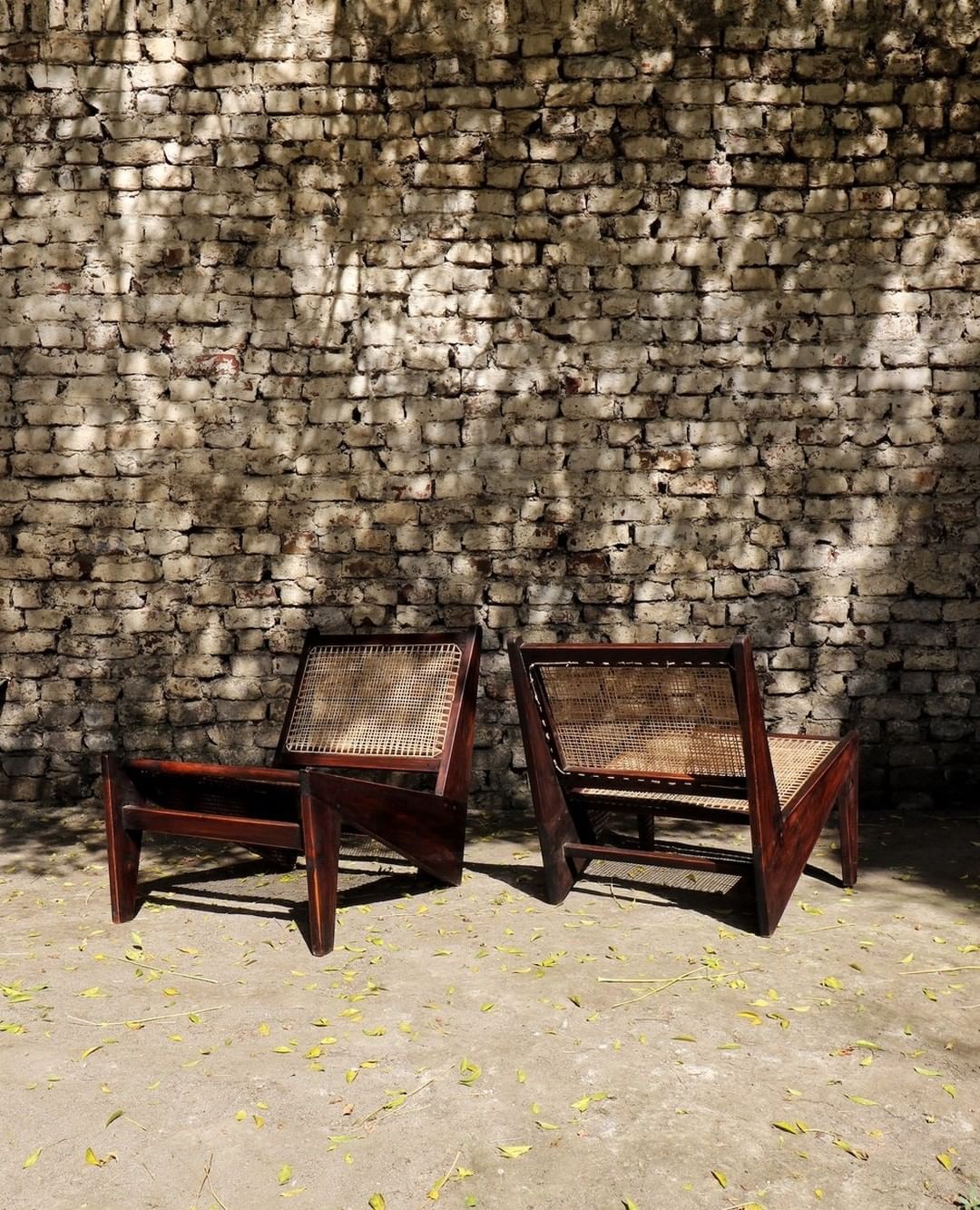 The Armless Kangaroo Chair is a lounge chair made of two parallel S-shaped frames that form the leg and back frame. Materials Used: Teak (origin: natural forests in Northern India) and natural cane. Dimensions Height: 61.5cm / 24.2 Inches