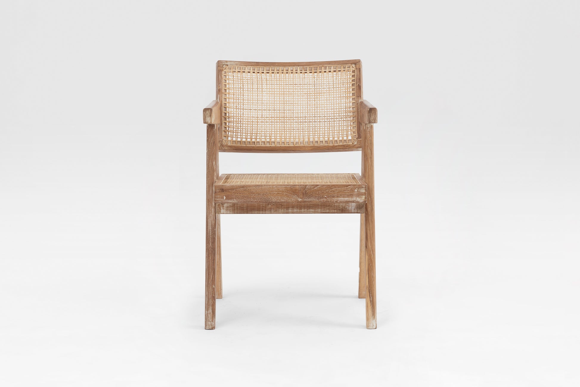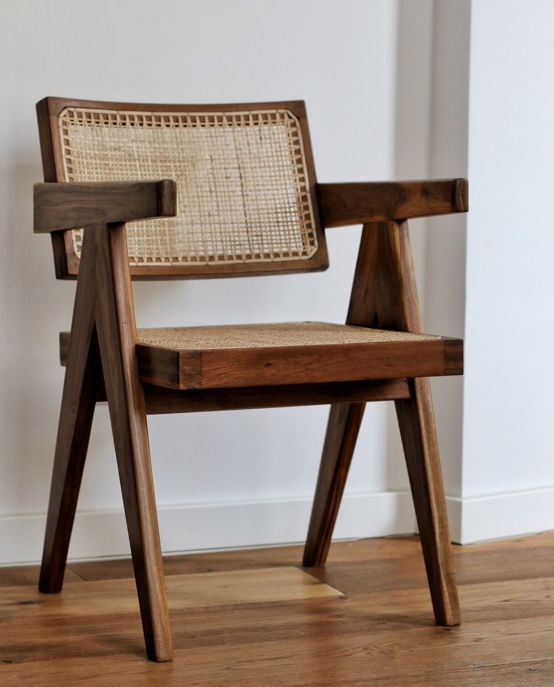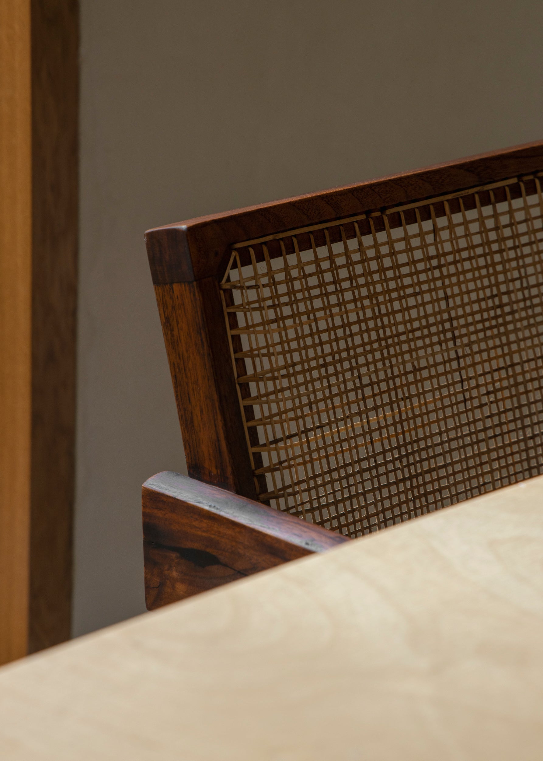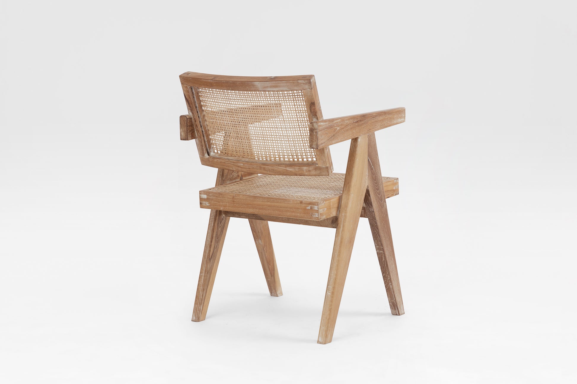The classic office/ dining chair made for various administrative offices in Chandigarh after the Pierre Jeanneret designs. Materials Used: Teak (origin: natural forests in Northern India) and natural cane.