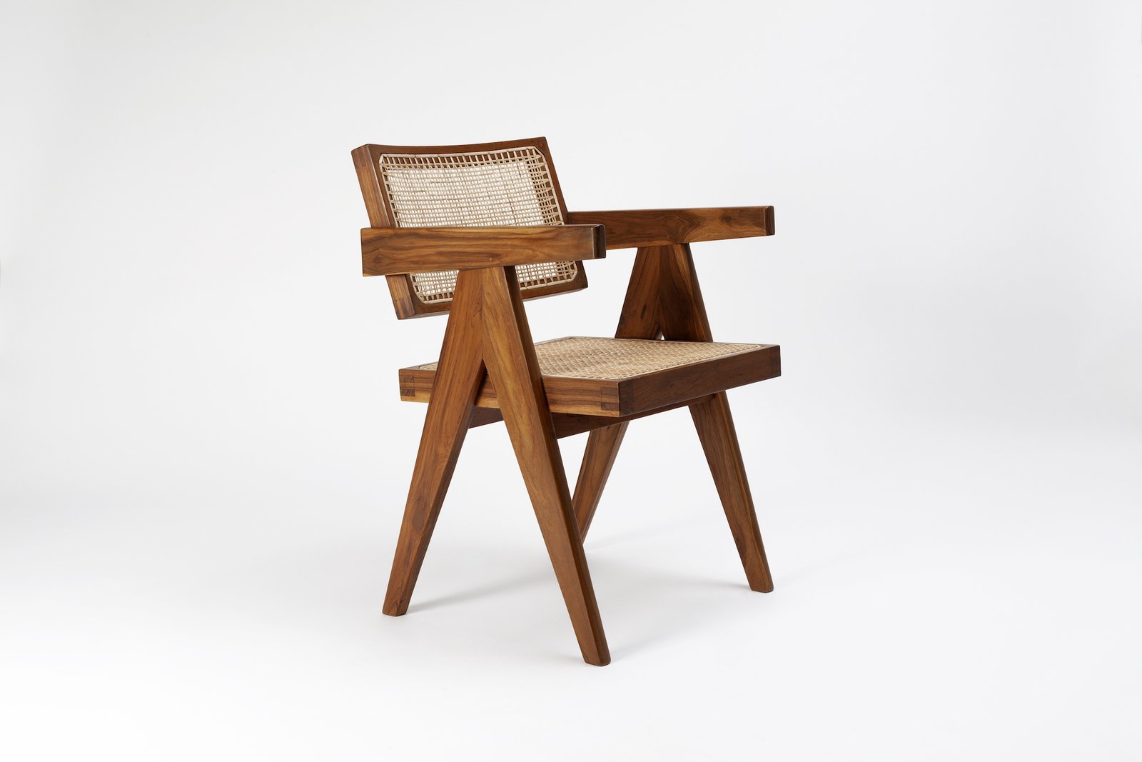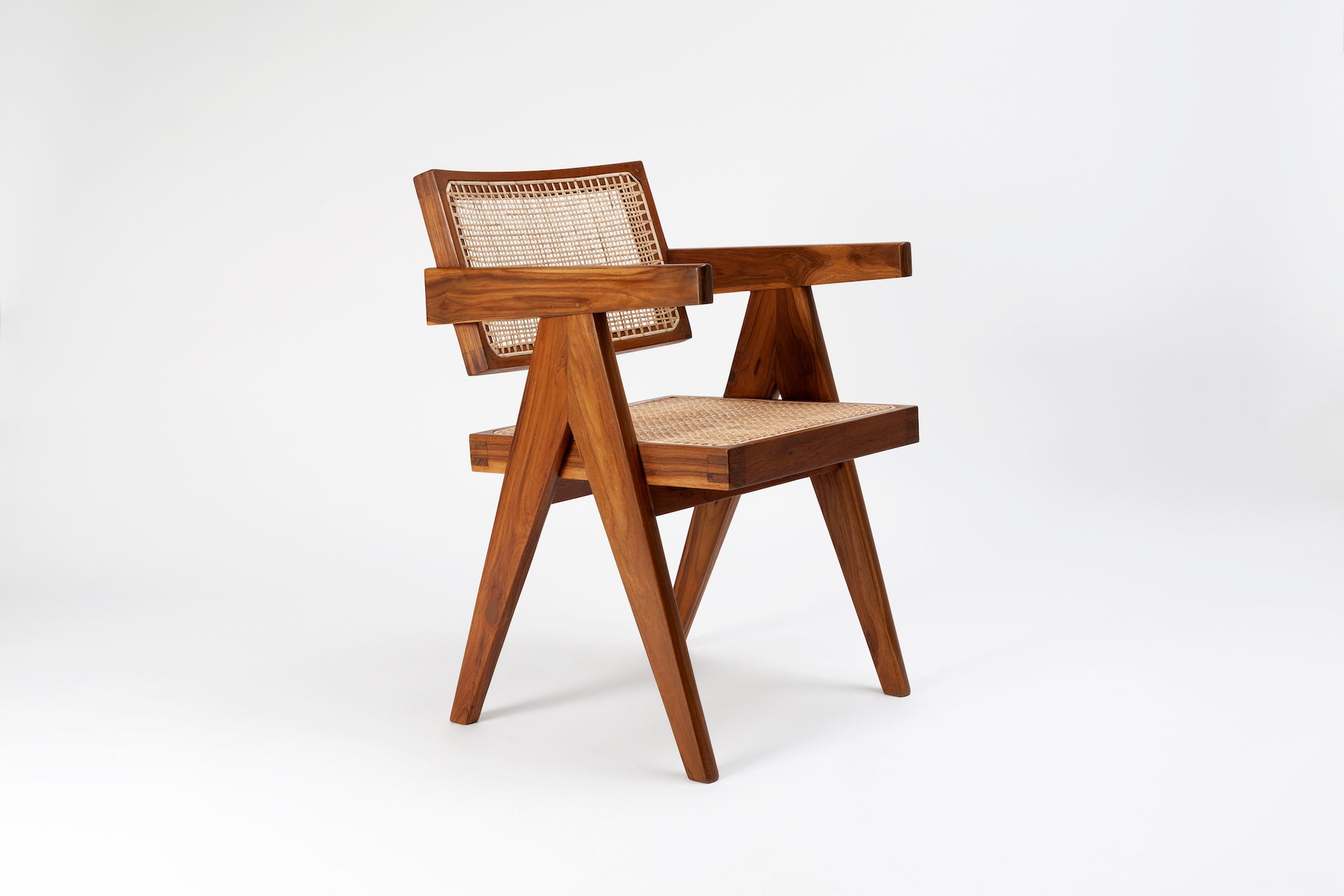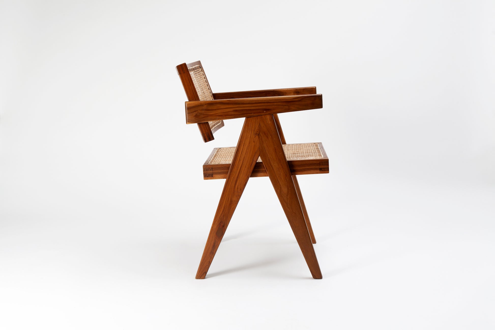 The classic office/ dining chair made for various administrative offices in Chandigarh after the Pierre Jeanneret designs. Materials Used: Teak (origin: natural forests in Northern India) and natural cane.