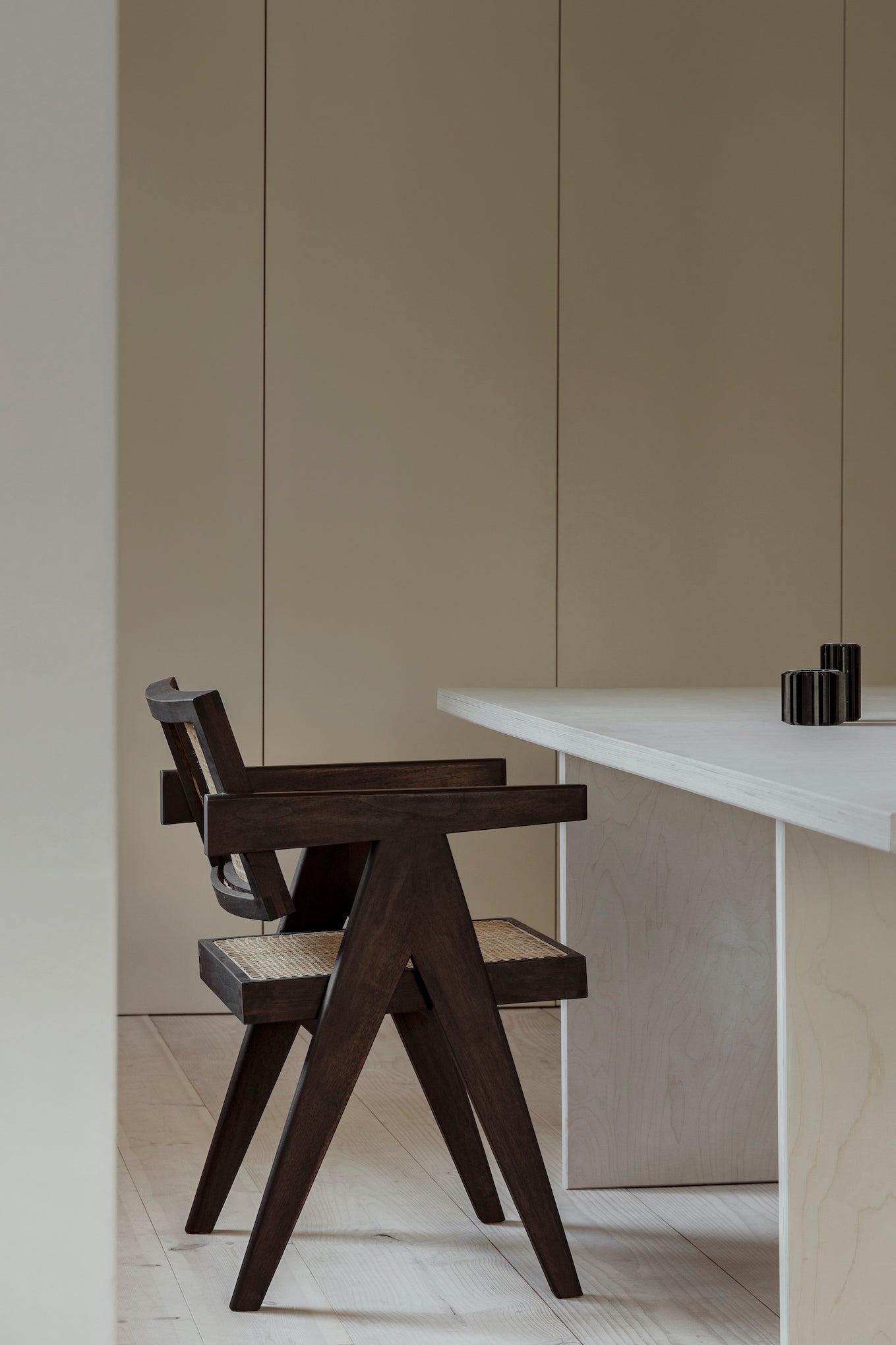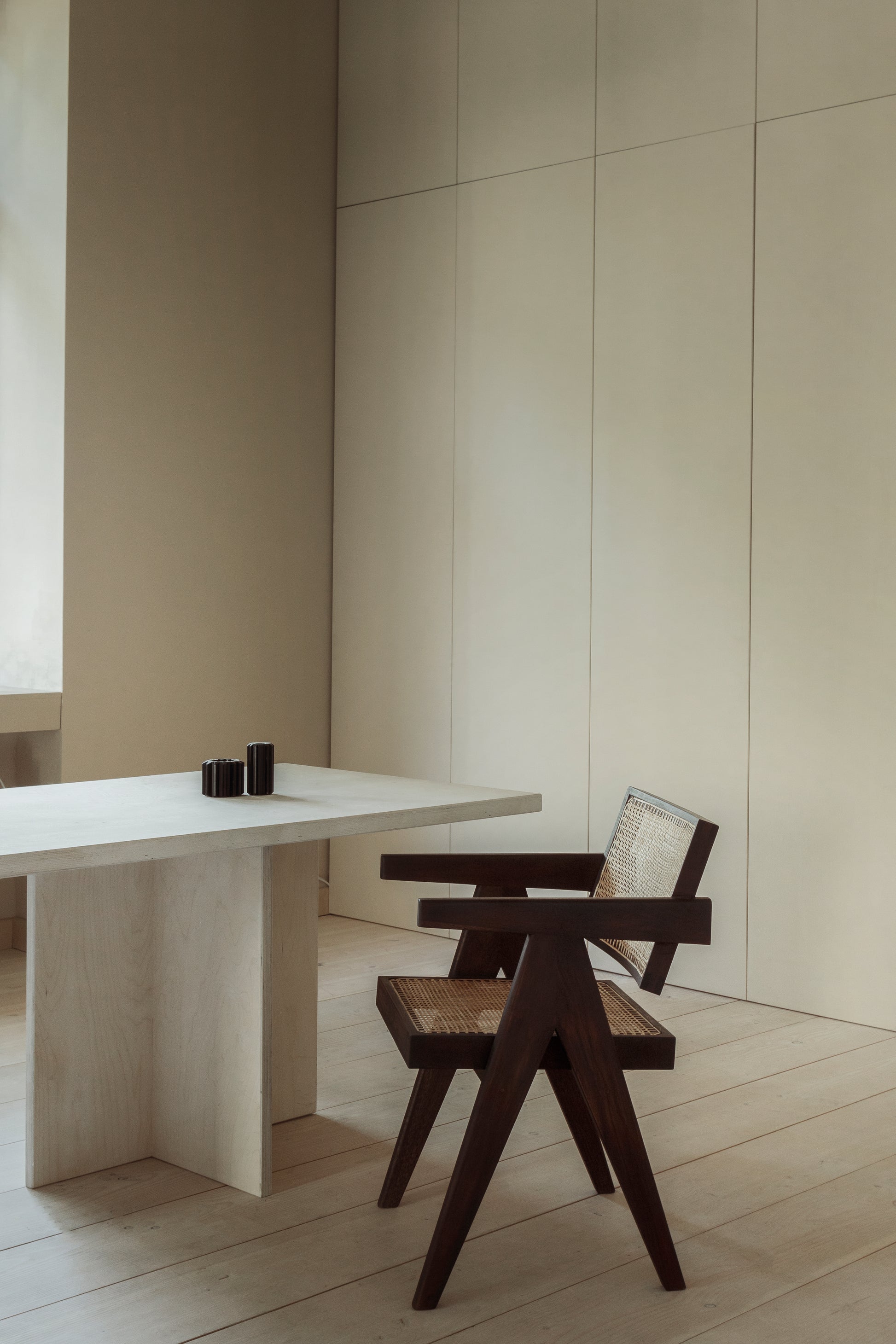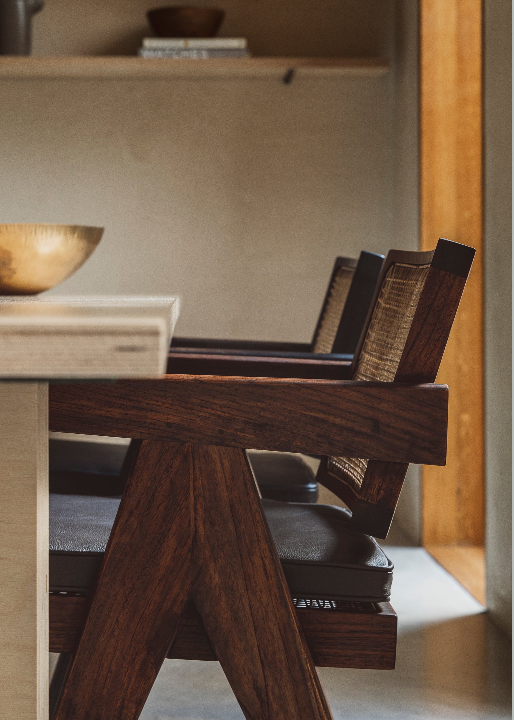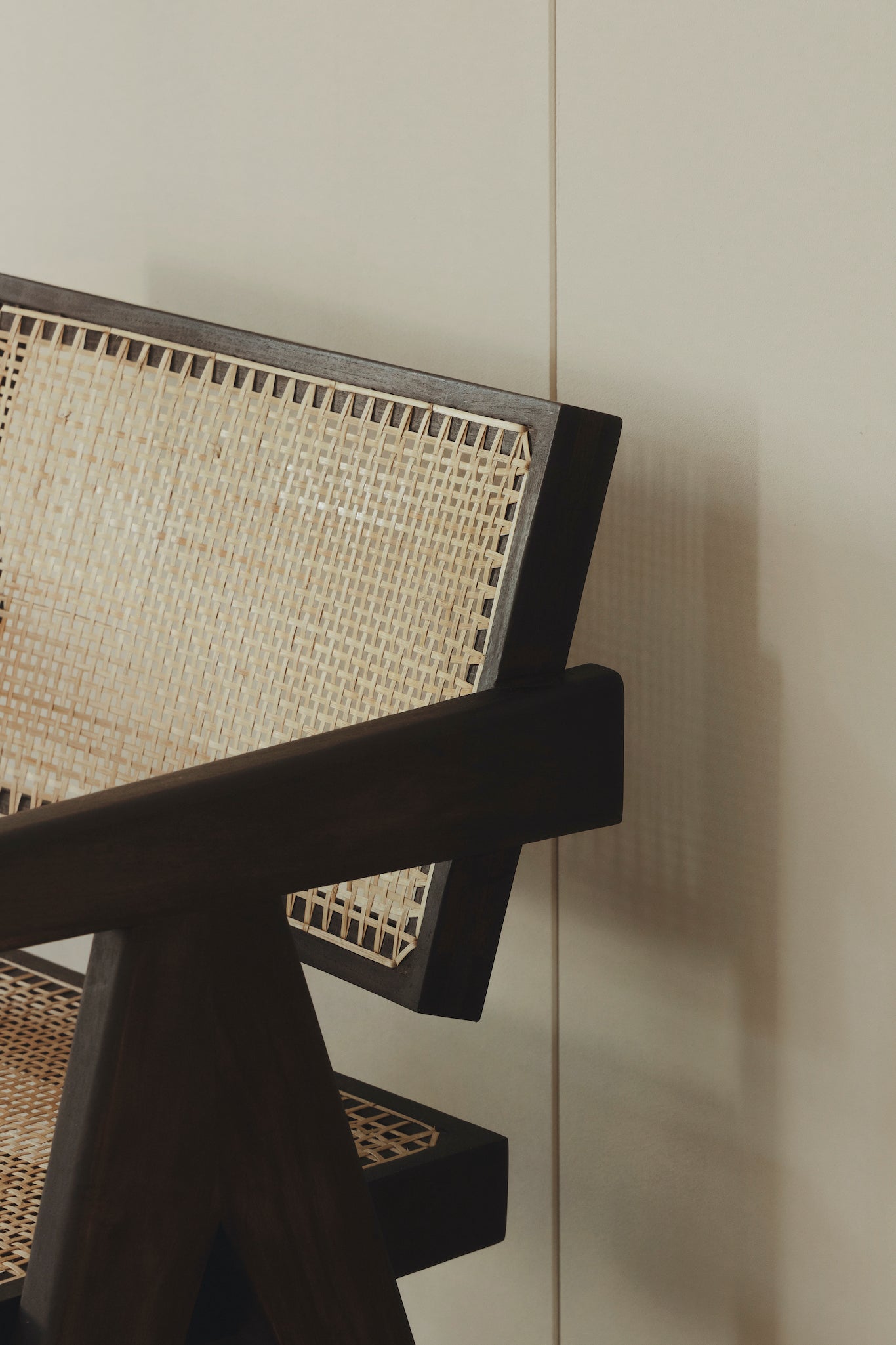 The classic office/ dining chair made for various administrative offices in Chandigarh after the Pierre Jeanneret designs. Materials Used: Teak (origin: natural forests in Northern India) and natural cane.